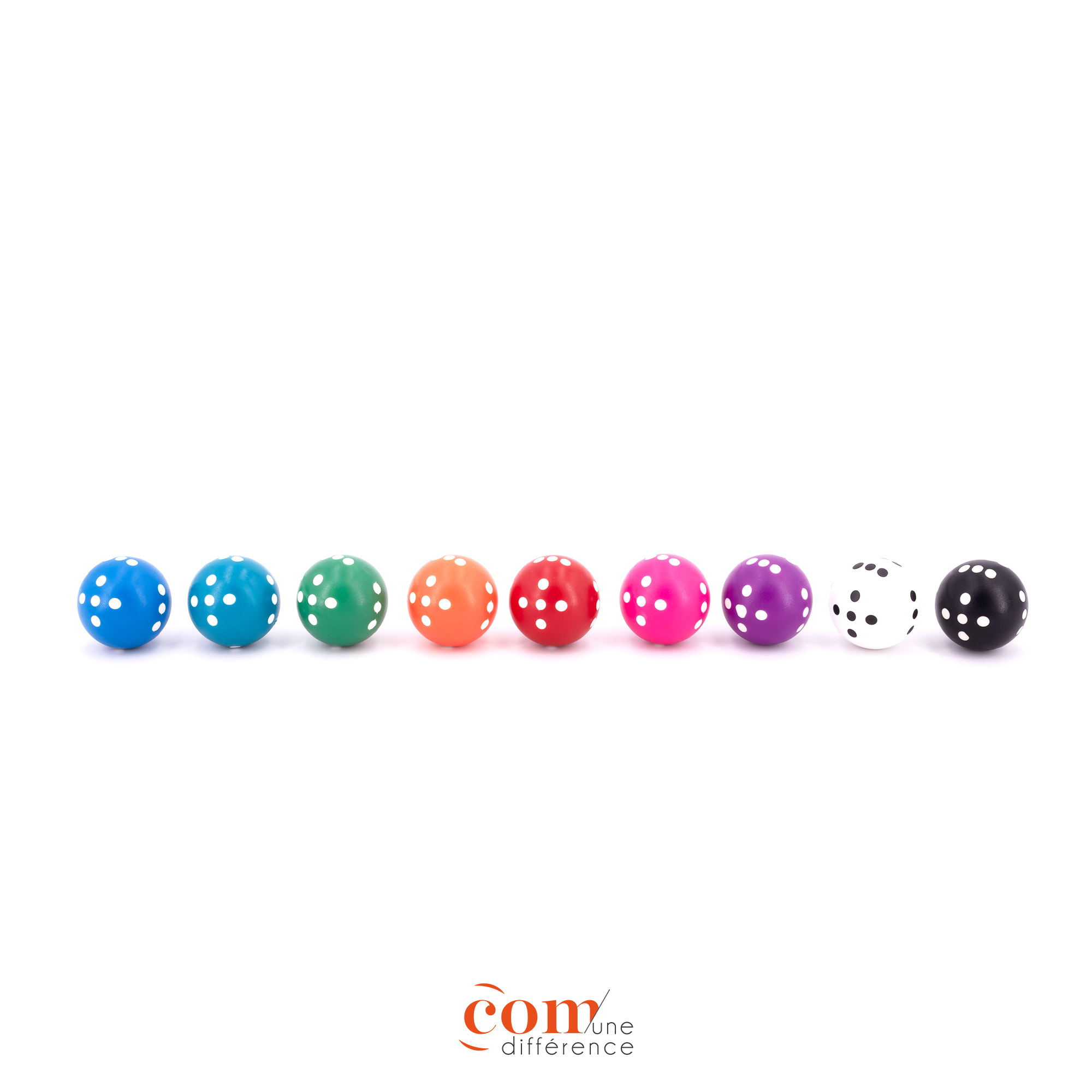 - Dé (9 couleurs au choix) : 21mm de diamètre en matière plastique (ABS)